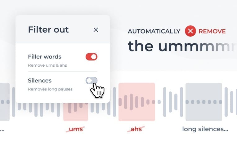 In Alitu, double-end recording protects remote calls from bad internet connections, then all the noise reduction, EQ, compression, and volume levelling are handled for you automatically. You can also edit by deleting text in the auto-generated transcripts, and it has automatic filler word and long pause removal tools, too.
