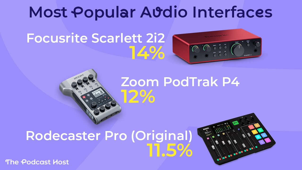 The most popular audio interface in podcasting is the Focusrite Scarlett 2i2. My own one served me well for over a decade. Once its age began to show, I replaced it with the Focusrite Vocaster 2, which is basically the 2i2 rebuilt specifically for podcasters.