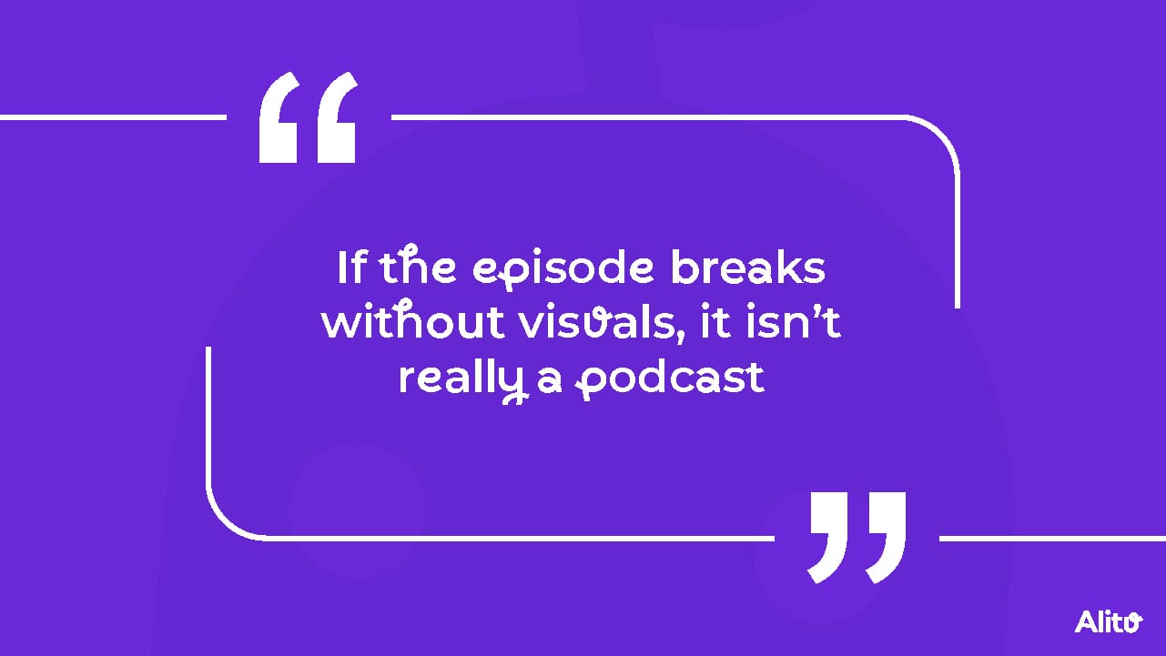 The goal is not to replace the audio with visuals. It's to support it. Your video podcast should always pass the 'look away' test, and listeners should never feel like second-class audience citizens.